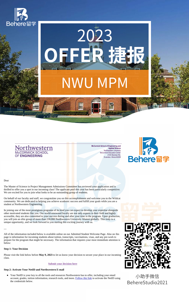 NWU MPM Offer+1,恭喜!
