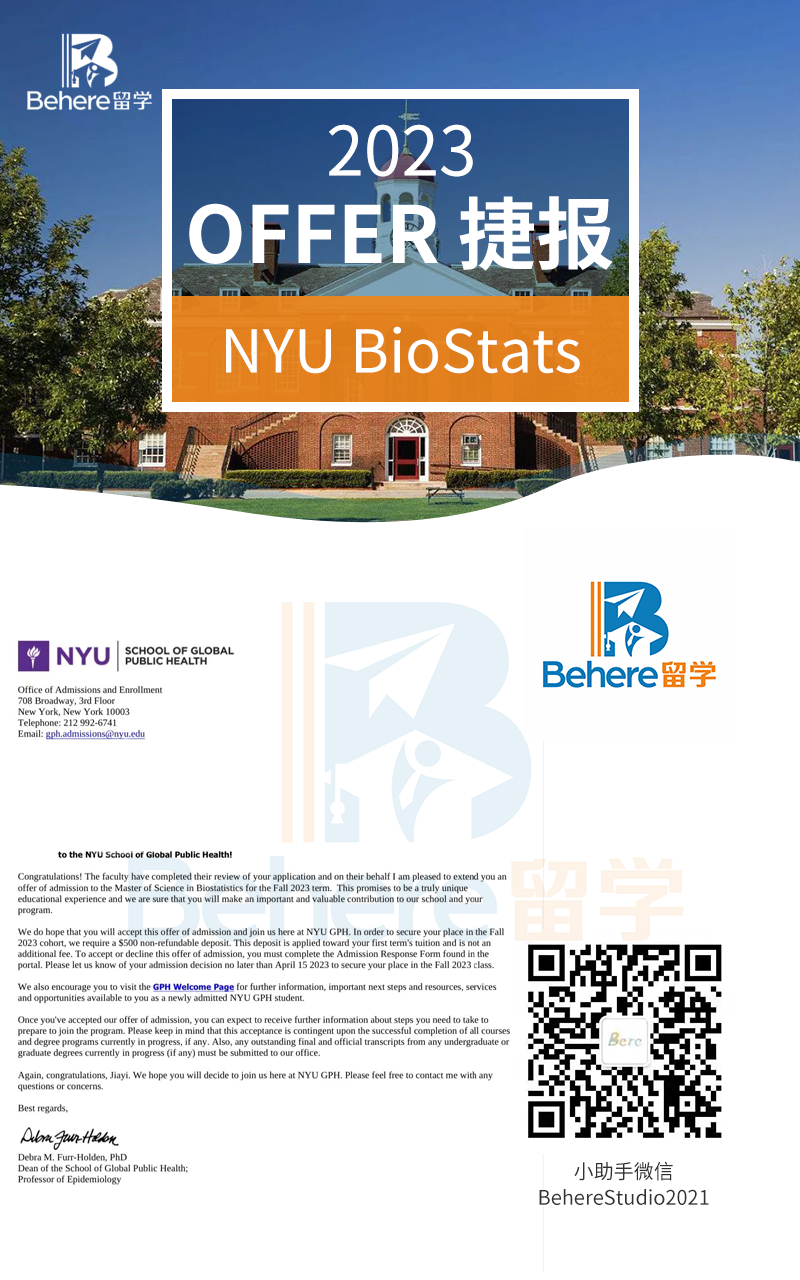 好事成双,美本学员斩获NYU BioStats, Columbia ERM Offer!