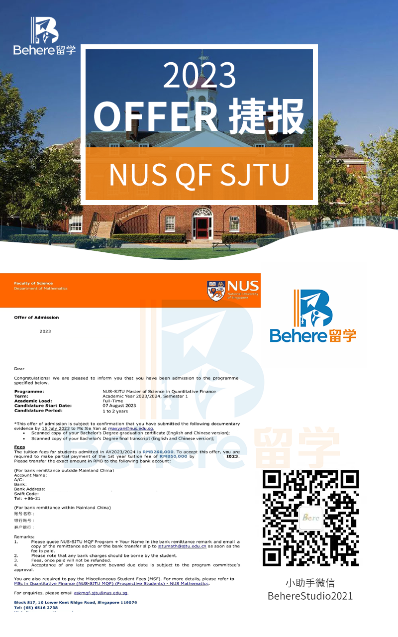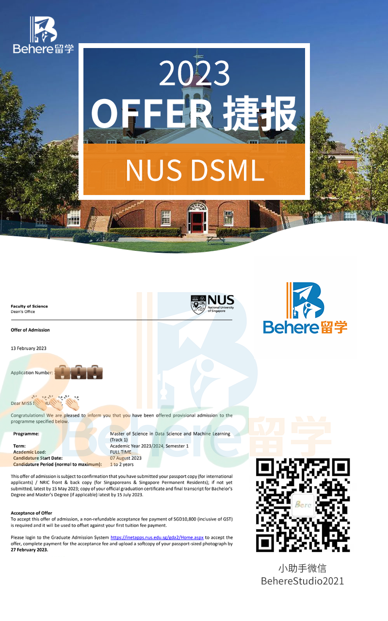 NUS二连,华中985连斩NUS DSML,NUS QF SJTU Offer!